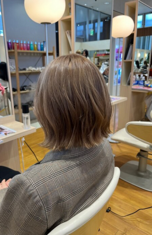 ベージュカラーとパツットボブ